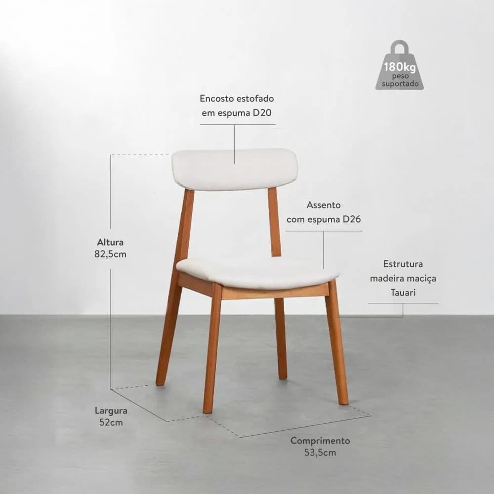 Características principais:- Cadeira fabricada com estrutura em Madeira Maciça Tauari seca e imunizada;