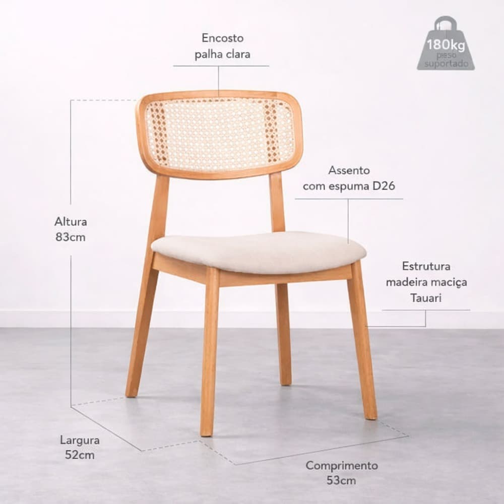 - Possui detalhe no encosto em Tela Rattan sextavado, Natural sem tingimento;