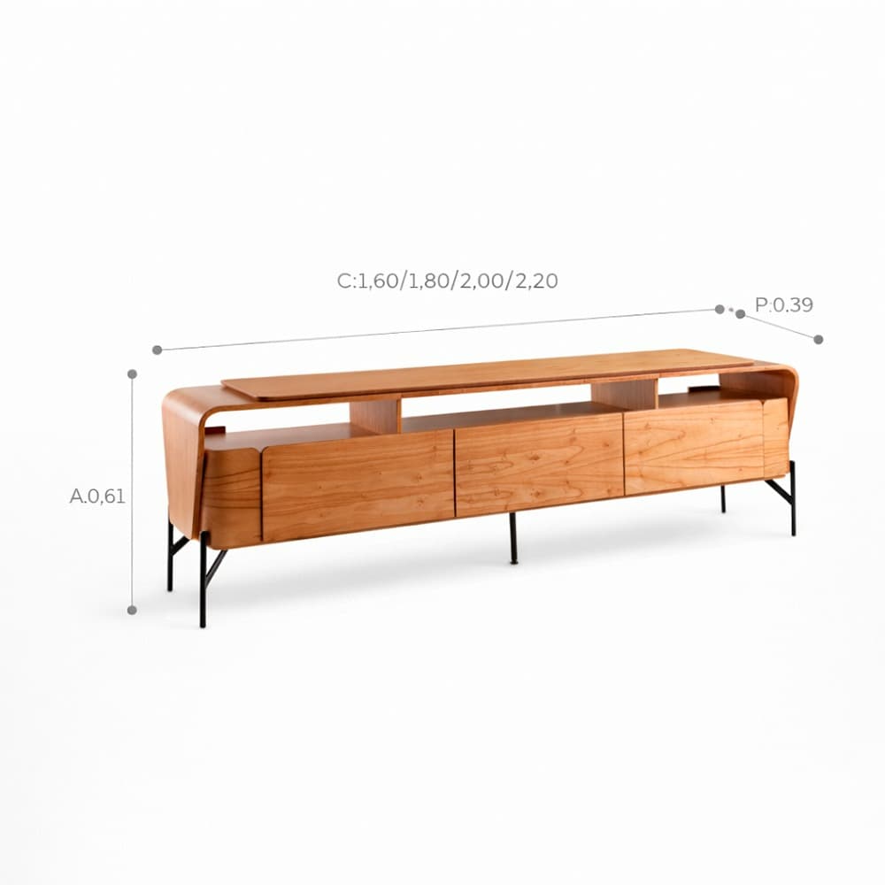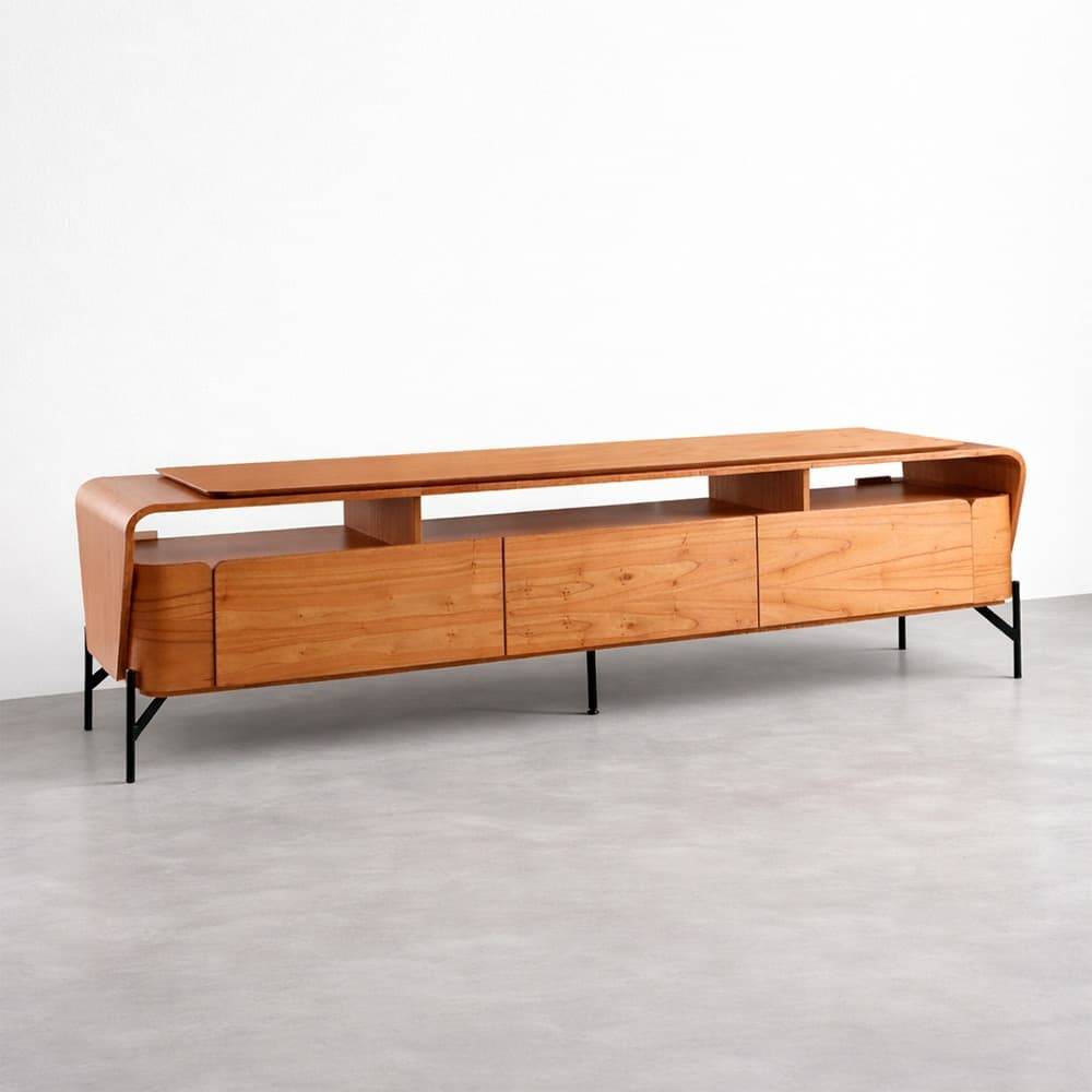 O Rack Olivia combina design contemporâneo e funcionalidade em um único móvel sofisticado. Produzido em lâmina de madeira natural, destaca-se pelas laterais inclinadas e fluidas que valorizam o acabamento. Seu tampo elevado cria nichos abertos ideais para organização, enquanto as três amplas gavetas garantem praticidade no dia a dia. Os pés metálicos proporcionam leveza visual e um efeito flutuante moderno, perfeito para compor salas de estar elegantes e bem organizadas.