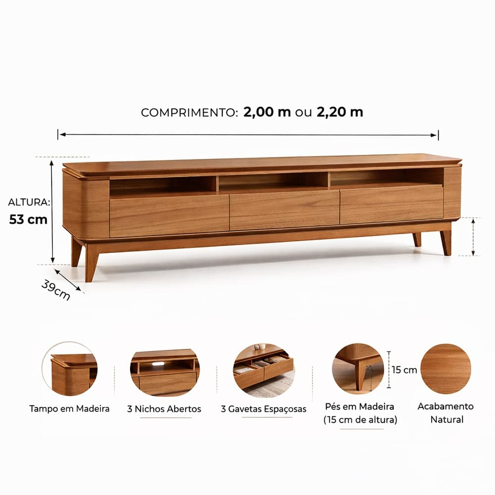 O Rack Templo Laminado combina elegância e praticidade para transformar sua sala de estar. Com estrutura em MDF e acabamento em laminado natural, possui pés em madeira maciça que garante resistência e durabilidade. Suas três gavetas com corrediças telescópicas oferecem organização eficiente, enquanto o tampo elevado com chanfro adiciona um toque moderno ao design. Perfeito para compor ambientes sofisticados com funcionalidade. ATENÇÃO: Cores disponíveis amadeiradas: Principais Características: |